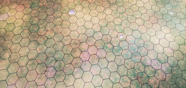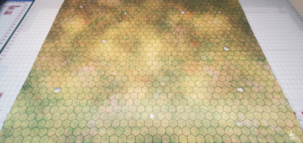 Printed on one side, black rubber on the other. This mat is perfect for covering your entire table! Just add trees to make a convincing Forest Battleground. Works for any tile laying or miniature game such as Heroscape, BattleTech, and Role Playing Games as well.