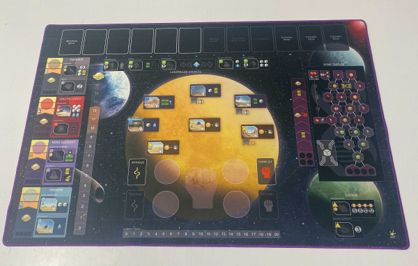 Printed on both sides, black rubber core. This Dune Imperium play mat will make your game night a hit! Support for both Immortality and Immortality + Rise of IX, as expansion content is on the mat.