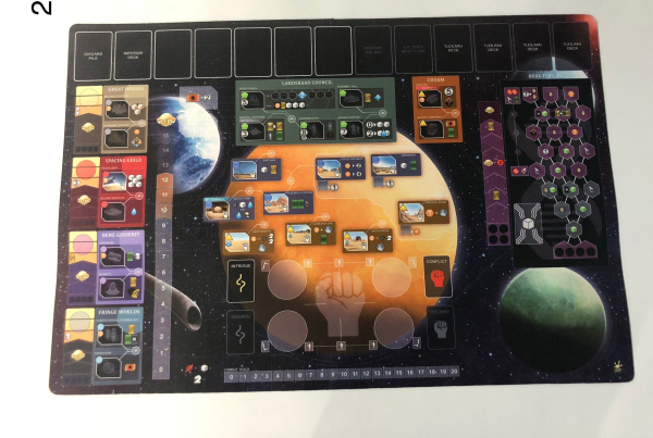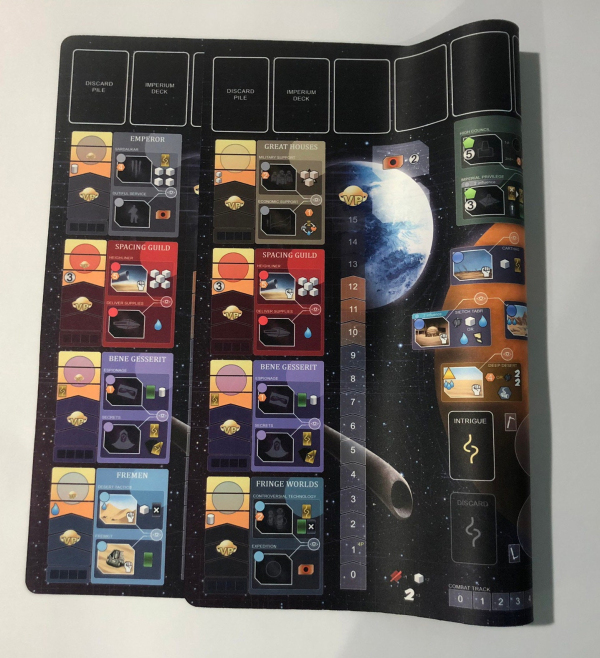 Printed on both sides, black rubber core. This Dune Uprising play mat will make your game night a hit! Support for Immortality and Immortality 5-6 player, as expansion content is on the mat.