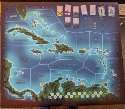 This 31X27 mat features a slip resistant bottom and is the perfect background for your games of Merchants & Marauders. 20% larger then the original map! Everything has a place, and everything fits in its place.