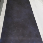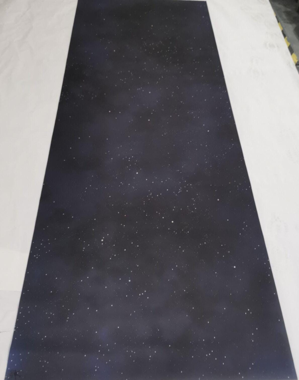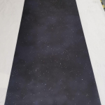 Printed on one side, black rubber on the other. This mat is perfect for covering your entire table! Works for any tile laying or miniature game. X-Wing, Armada, Battlestar Galactica, Xia, Galaxy Trucker, and tons of other games look fantastic on this!