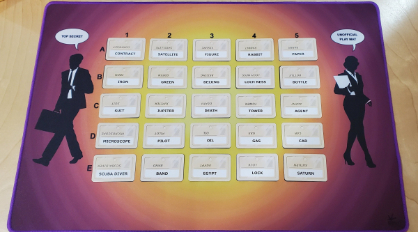 This 24X16 mat features a slip resistant bottom and is the perfect background for your games of Codenames. Everything has a place, and everything fits in its place!