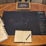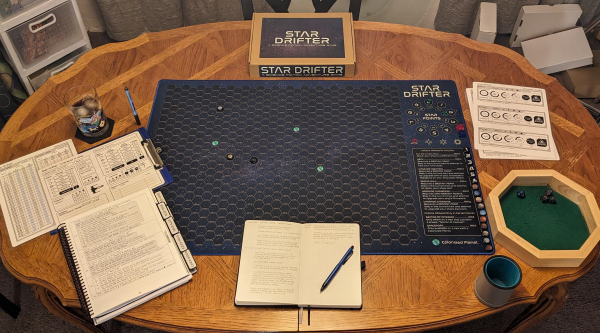Printed on one side, with a rubber backing and stitched edging. This Star Drifter play mat will make your game night a hit! Designed specifically for Star Drifter, the grid is the perfect size for your games.