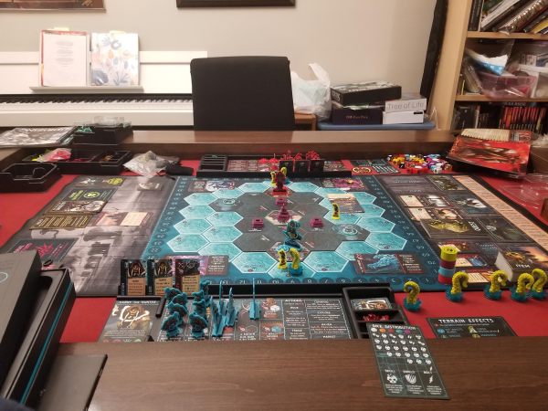 Grippy Surface – Locks chits, cards, and ships in place. Not sticky or tacky to the touch. Press the item into the mat for it to hold.