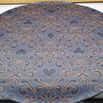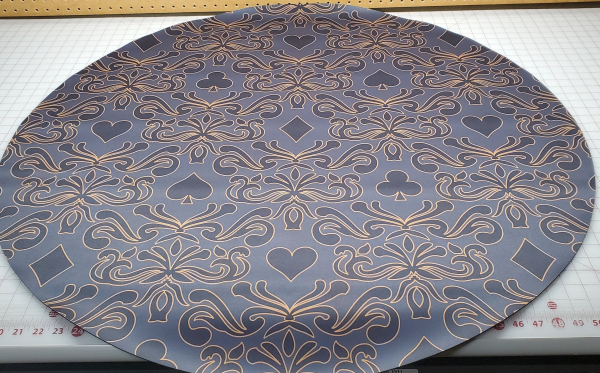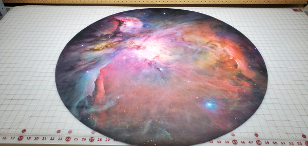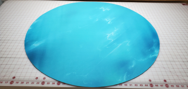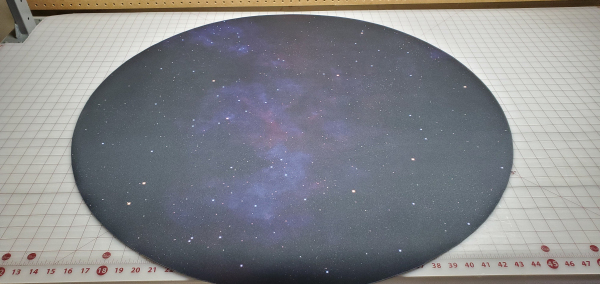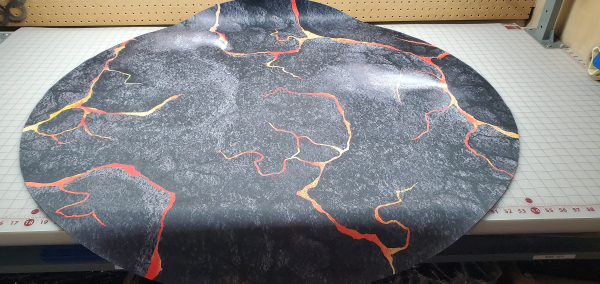 I also can make larger tables over 48" in diameter up to 60" as custom printed single piece mats, contact me directly to discuss lead time and art options. These are set up on the listing as CUSTOM. My mats lie flat, and the seam in the middle will be nearly invisible. I ship have 100% customer satisfaction on doing this for folks.